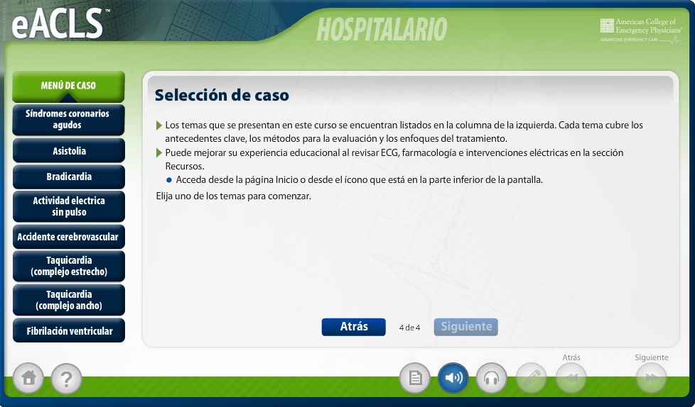 El eACLS™, en su fase práctica considera actividades que incluyen verificar que los alumnos sean competentes en el soporte vital avanzado.